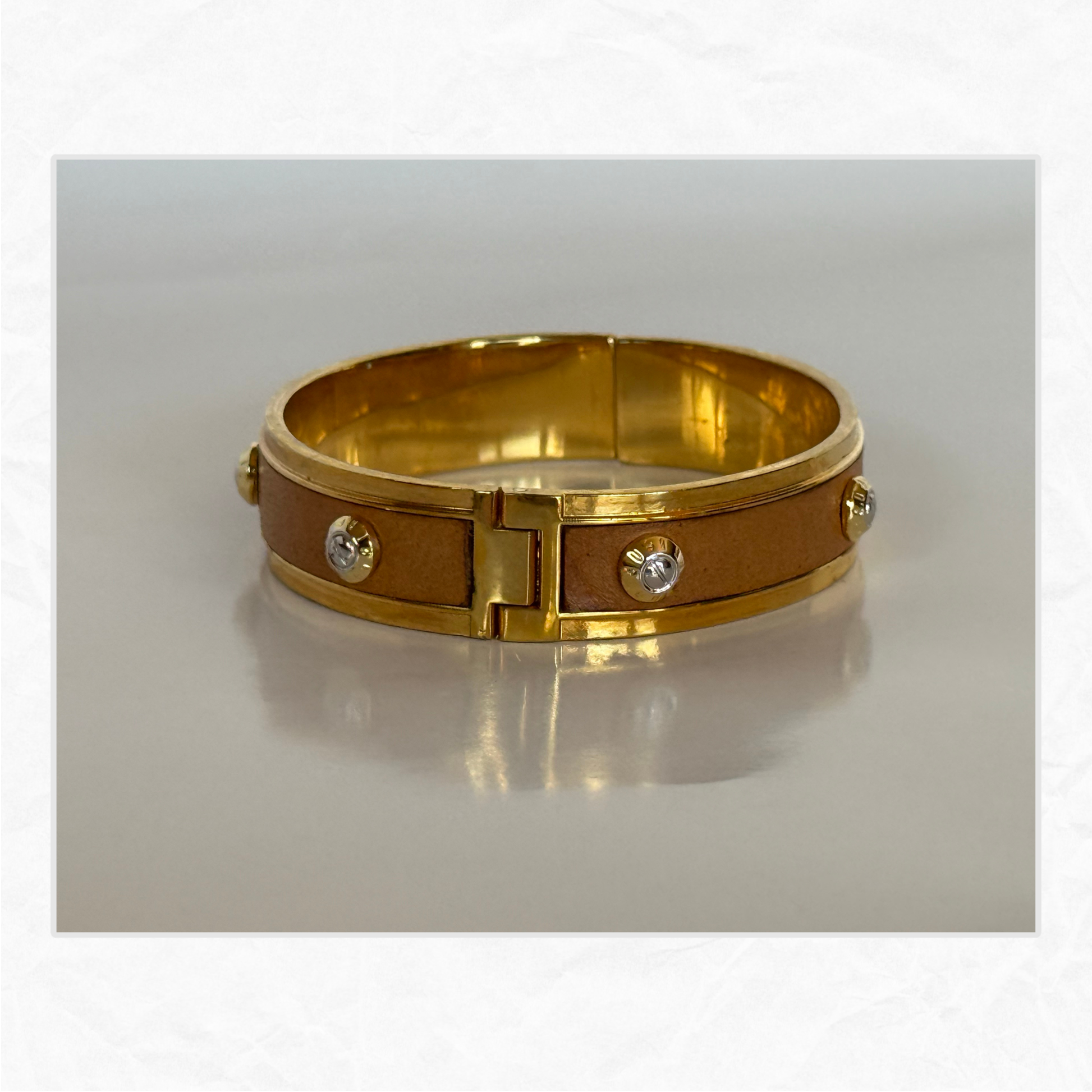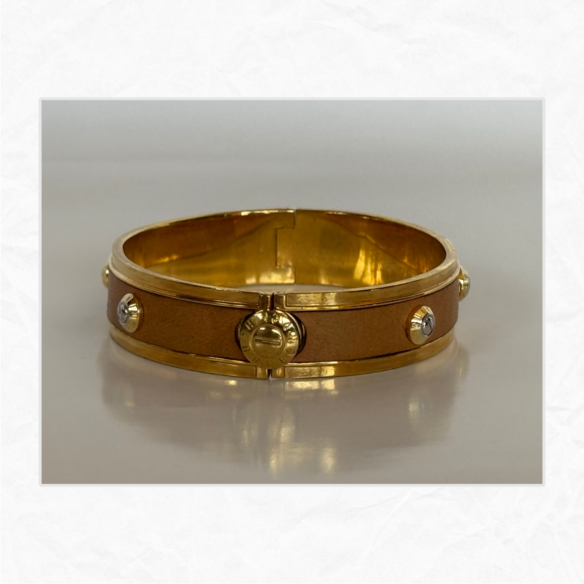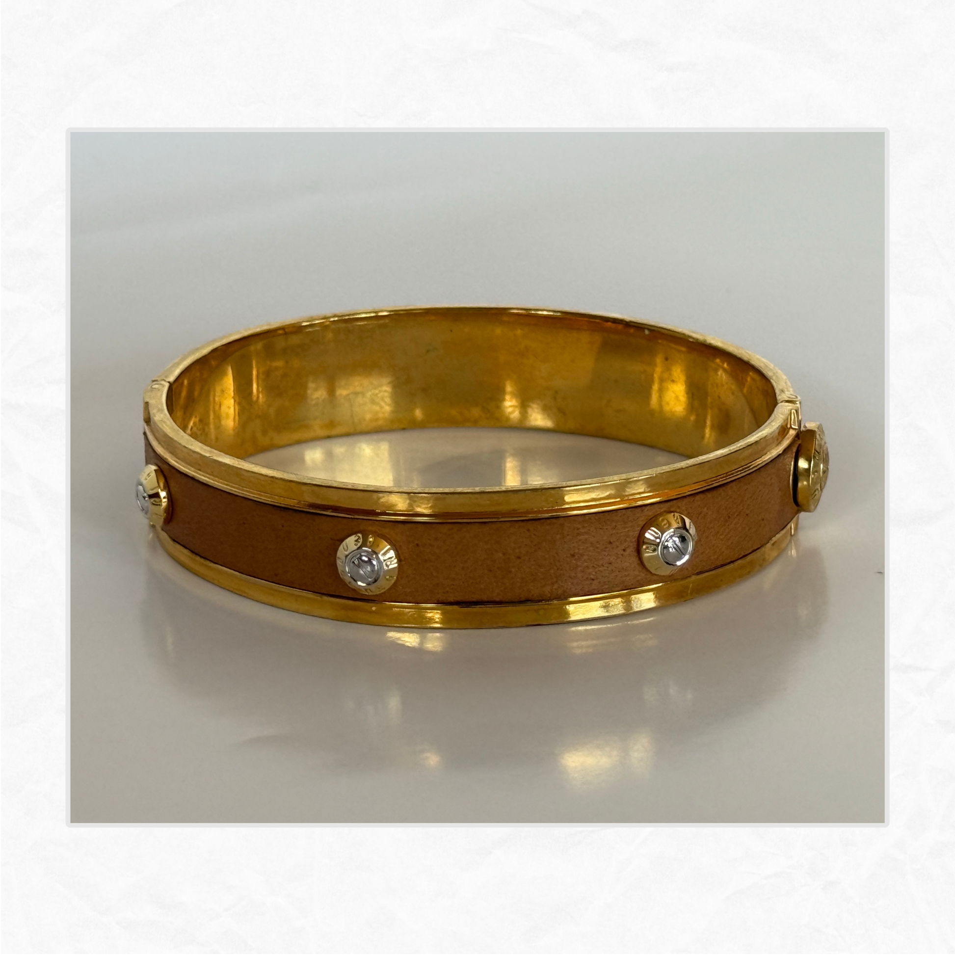 Vtg. HENRI BENDEL Leather & Brass Bangle Bracelet