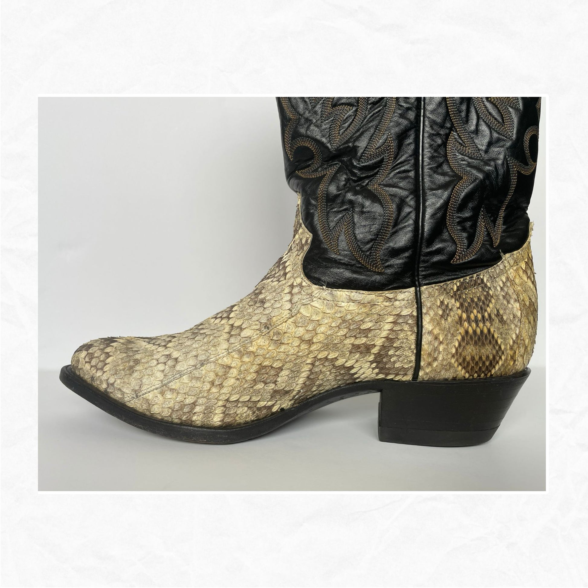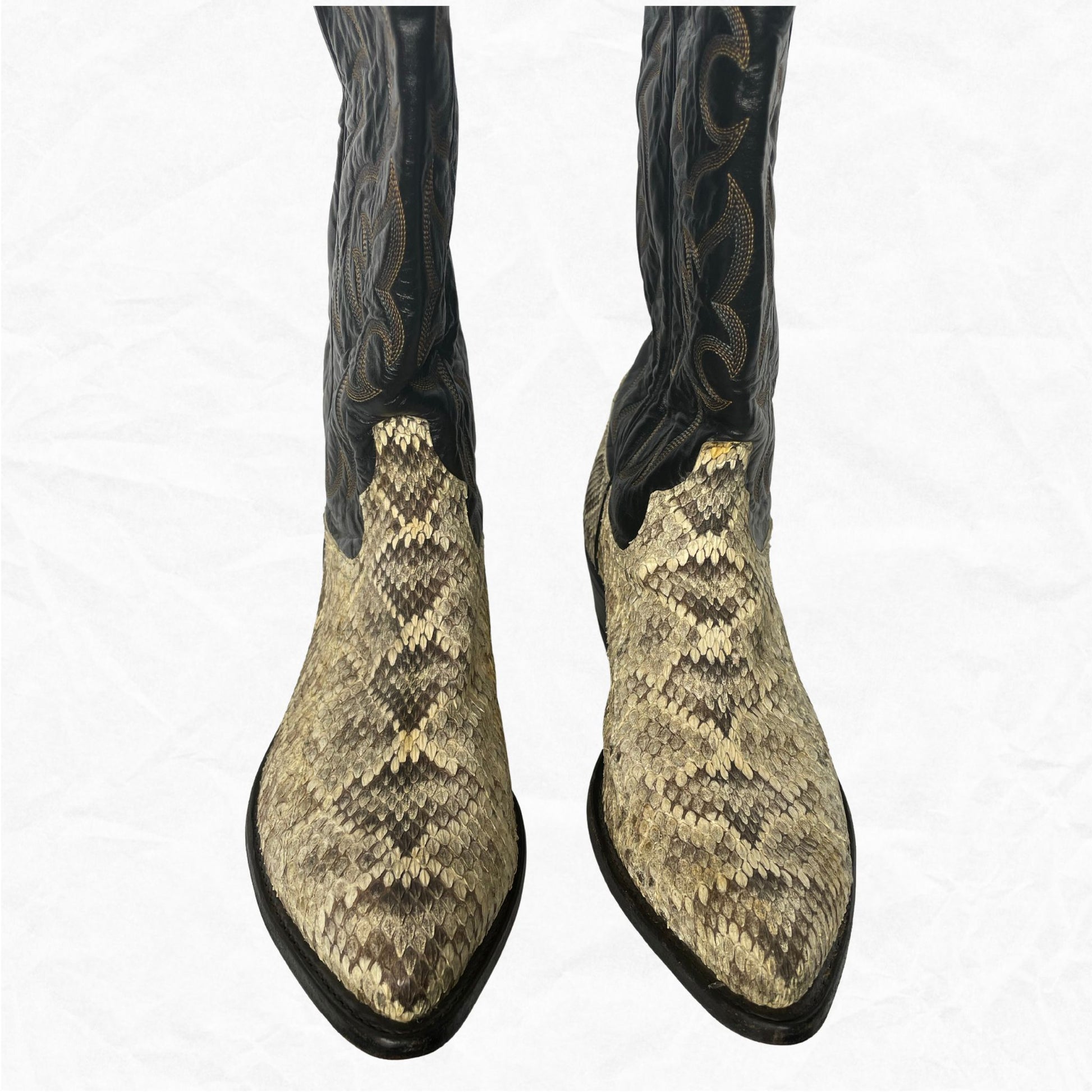 Vintage Authentic Tony Lama Natural Eastern/Acid Wash Rattlesnake Foot Cowboy Boots